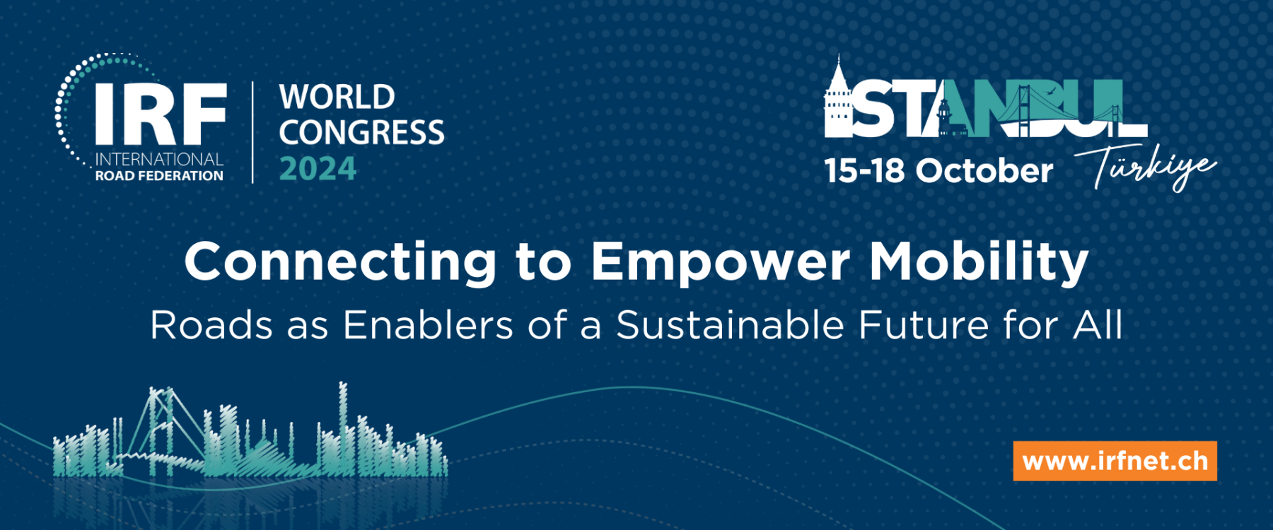 13 Mayıs 2024IRF Dünya Kongresiİki kıtanın şehri İstanbul, 15-18 Ekim 2024 tarihlerinde İstanbul Kongre Merkezi'nde IRF Dünya Kongresi'ne ev sahipliği yapacak.