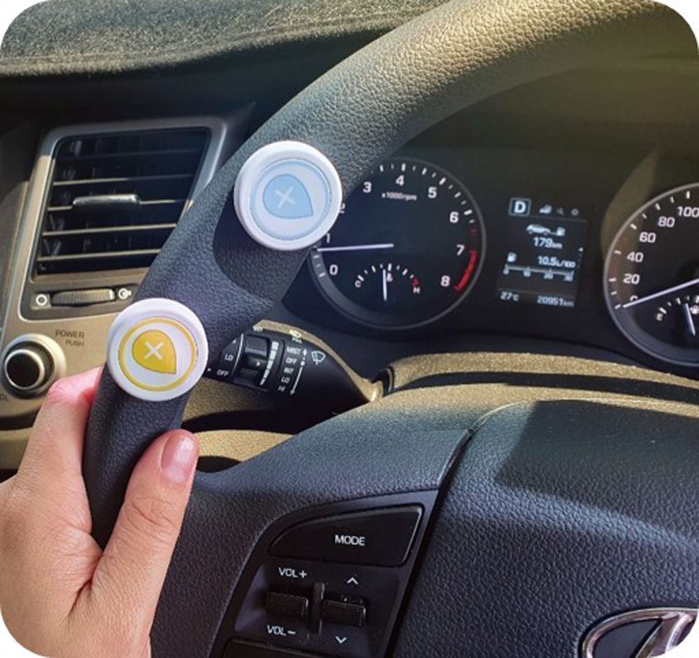 The unit is operated using two wireless buttons mounted on the vehicle dashboard or steering wheel.