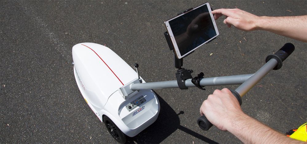 Data can be collected at variable speeds up to 5km/hr and is controlled by an Android tablet. Real-time results are displayed on the screen, allowing for on-site decision making. Data can then be uploaded to the cloud via a Wi-Fi connection or downloaded via USB cable.